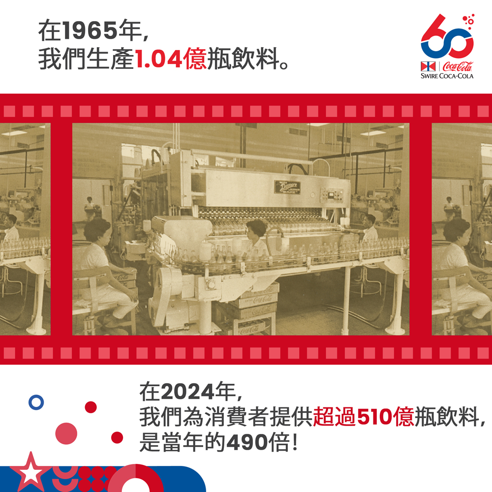 今年,太古可口可乐迎来60周年志庆。自1965年,太古可口可乐从一家装瓶厂开始,发展成拥有42家装瓶厂的企业,为超过10亿消费者提供逾65个深受全球喜爱的饮料品牌,并成为可口可乐公司第五大的装瓶伙伴,足迹遍布大中华区、美国和东南亚市场。